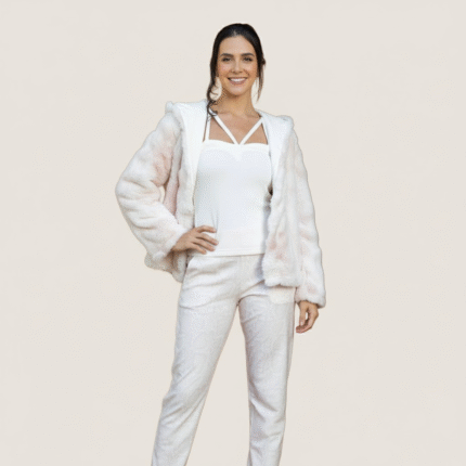 بيجامه قطعتين توب بولار بزونط وبنطلون قطيفة مبطن
